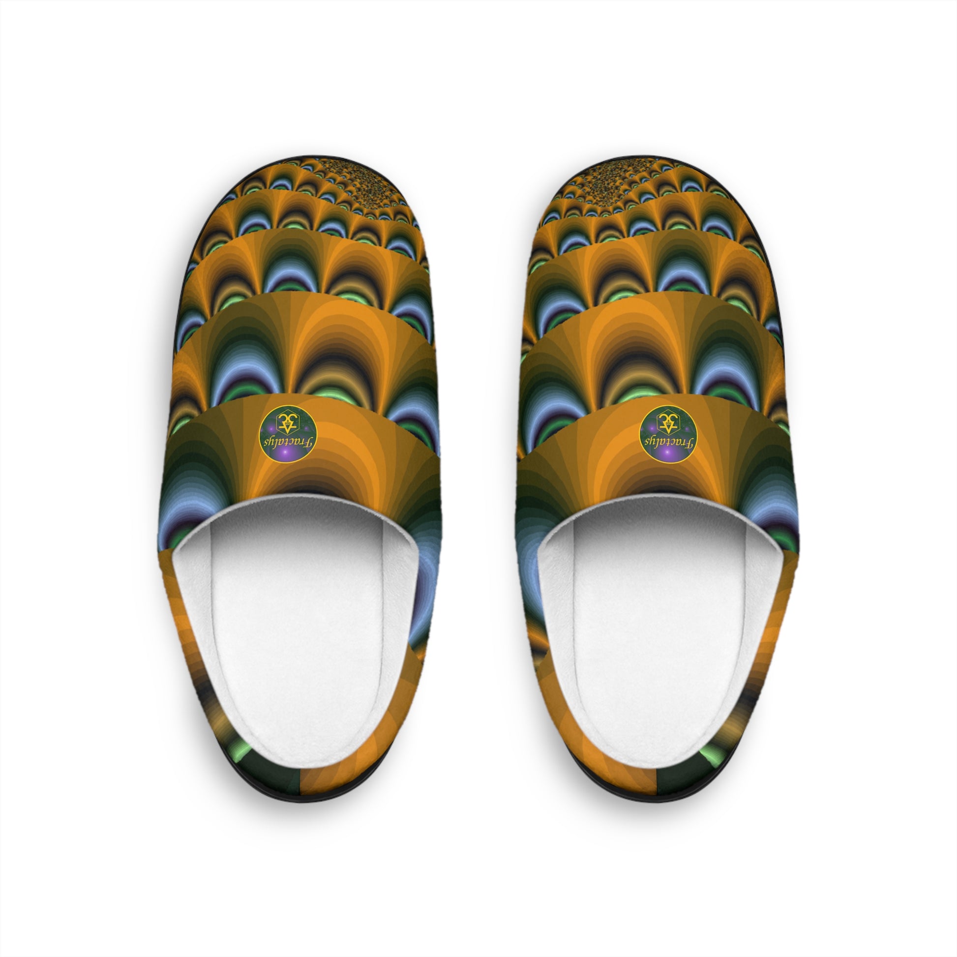 Upgrade your comfort with these trendy men's indoor slippers! Featuring a bold abstract pattern in warm golden hues with a futuristic touch, these slippers are perfect for lounging at home in style. Whether you're relaxing, working from home, or just keeping your feet warm, these cozy slip-ons provide soft cushioning and a non-slip sole for all-day comfort.
