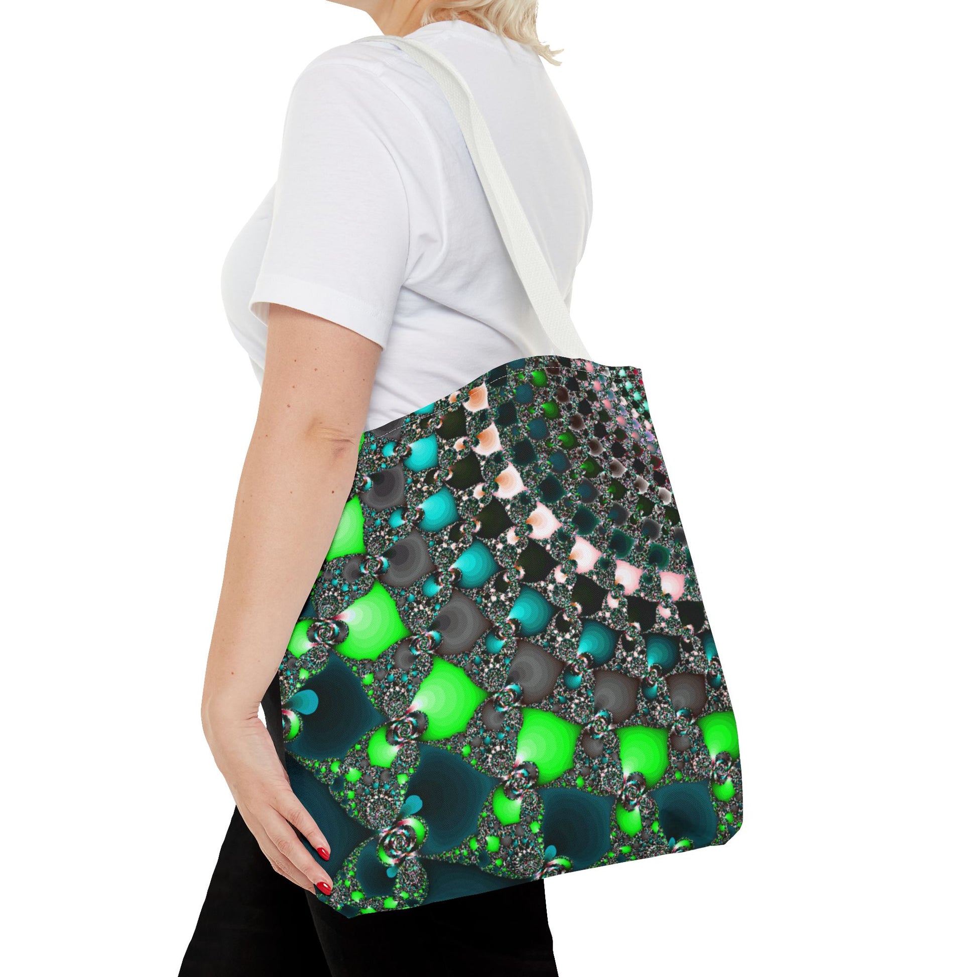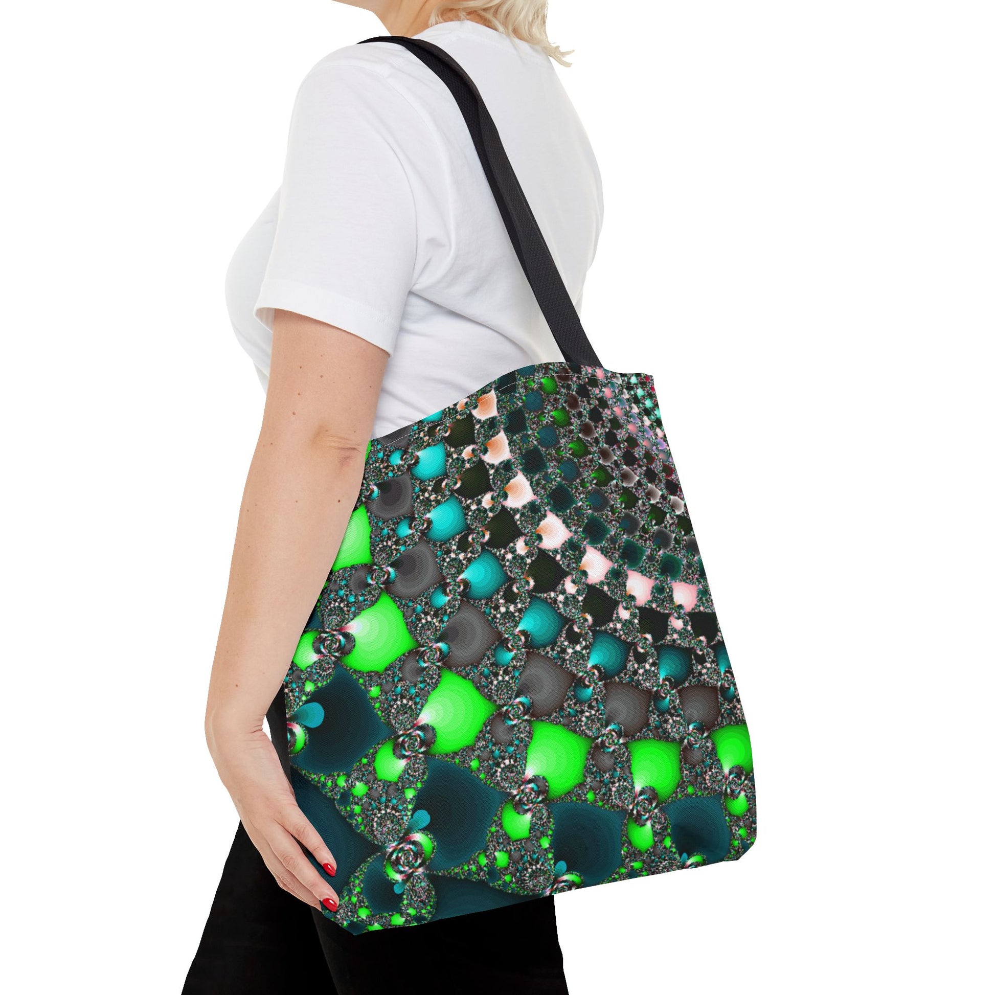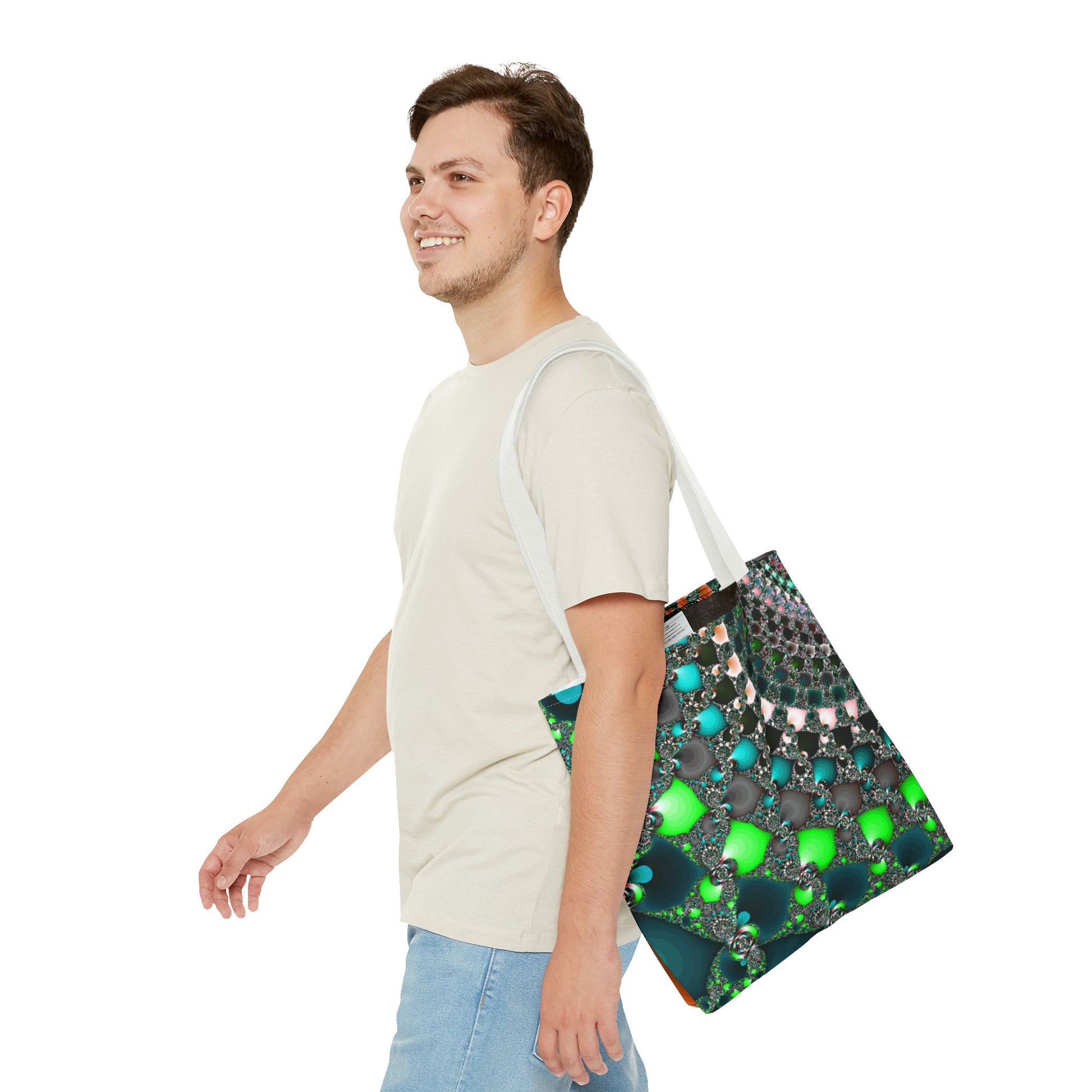 This Tote Bag is the perfect accessory for everyday use, offering both style and functionality. Made with 100% polyester, it is durable and retains its shape. The seamless thread color and reinforced stitching on handles ensure longevity. With boxed corners and 5 handle color options, this tote bag offers ample space and customization options for any occasion.