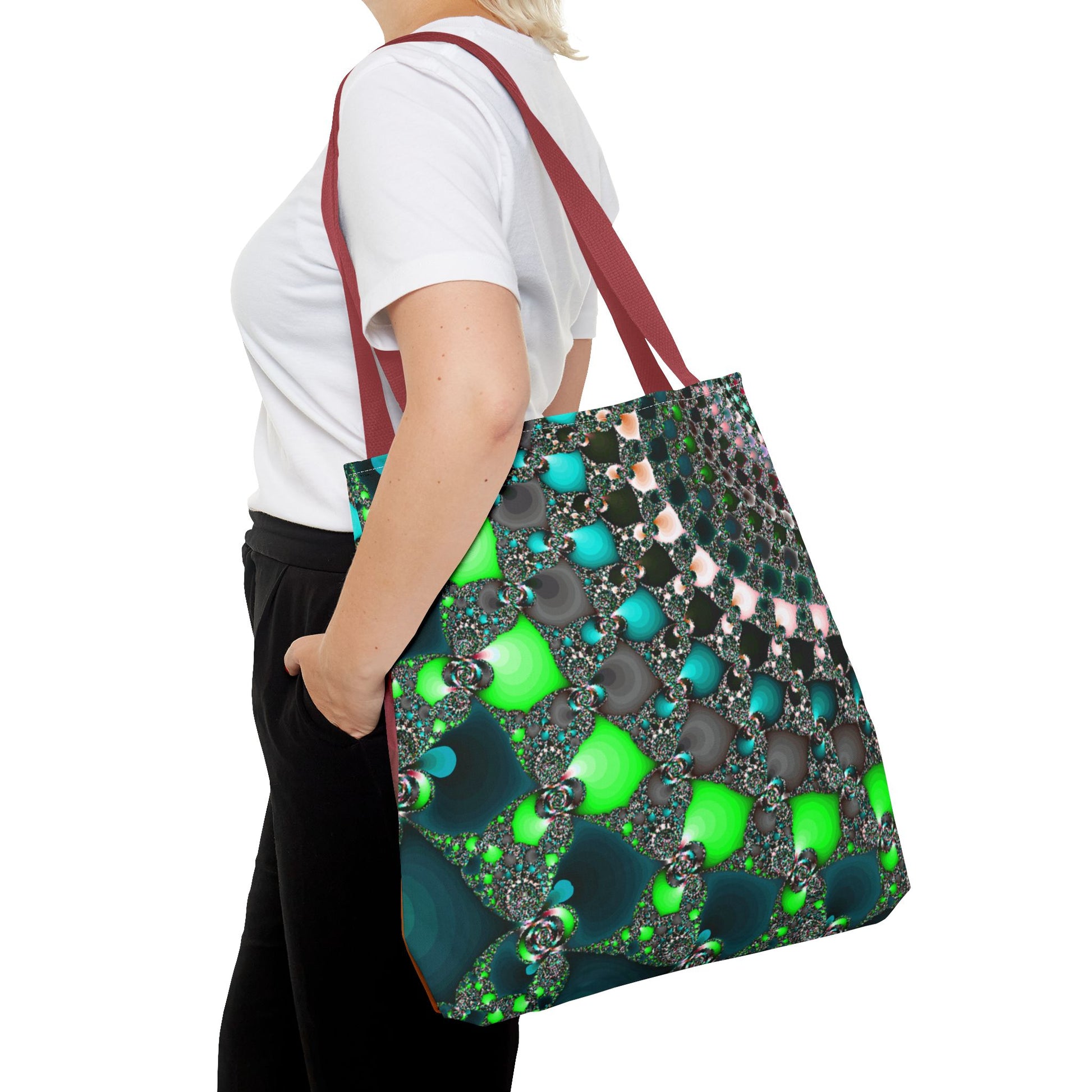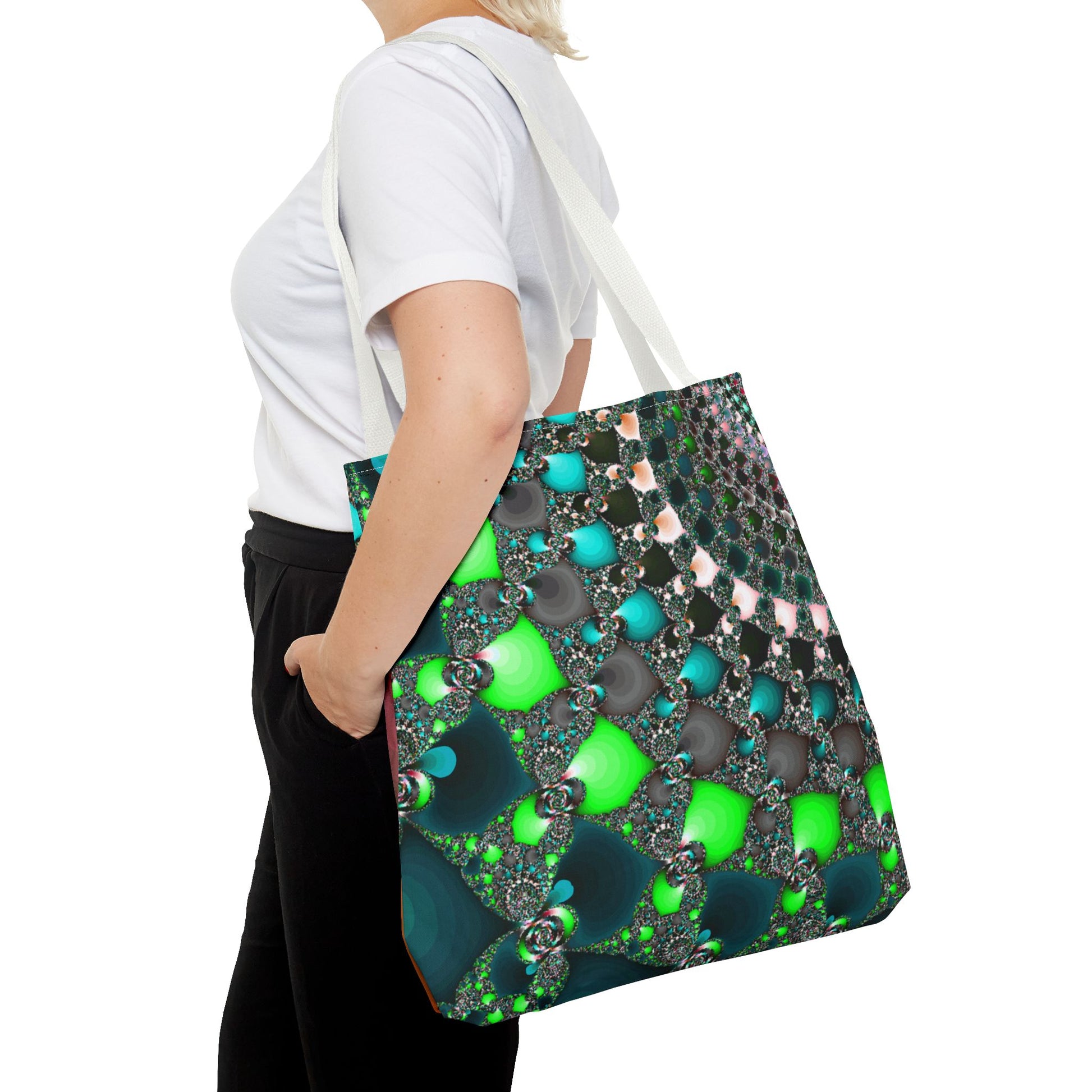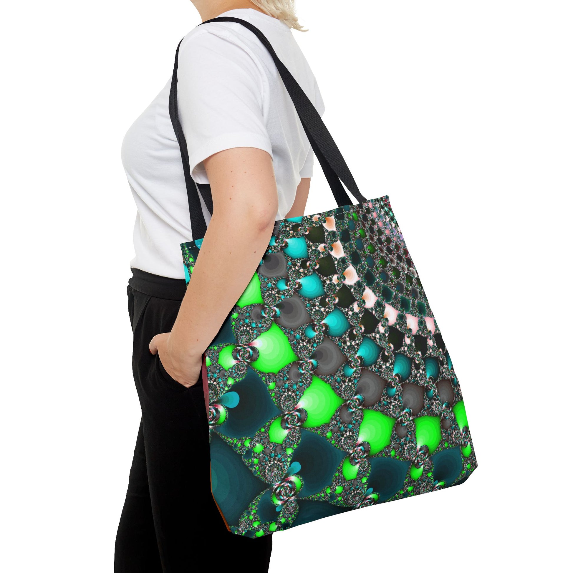 This Tote Bag is the perfect accessory for everyday use, offering both style and functionality. Made with 100% polyester, it is durable and retains its shape. The seamless thread color and reinforced stitching on handles ensure longevity. With boxed corners and 5 handle color options, this tote bag offers ample space and customization options for any occasion.